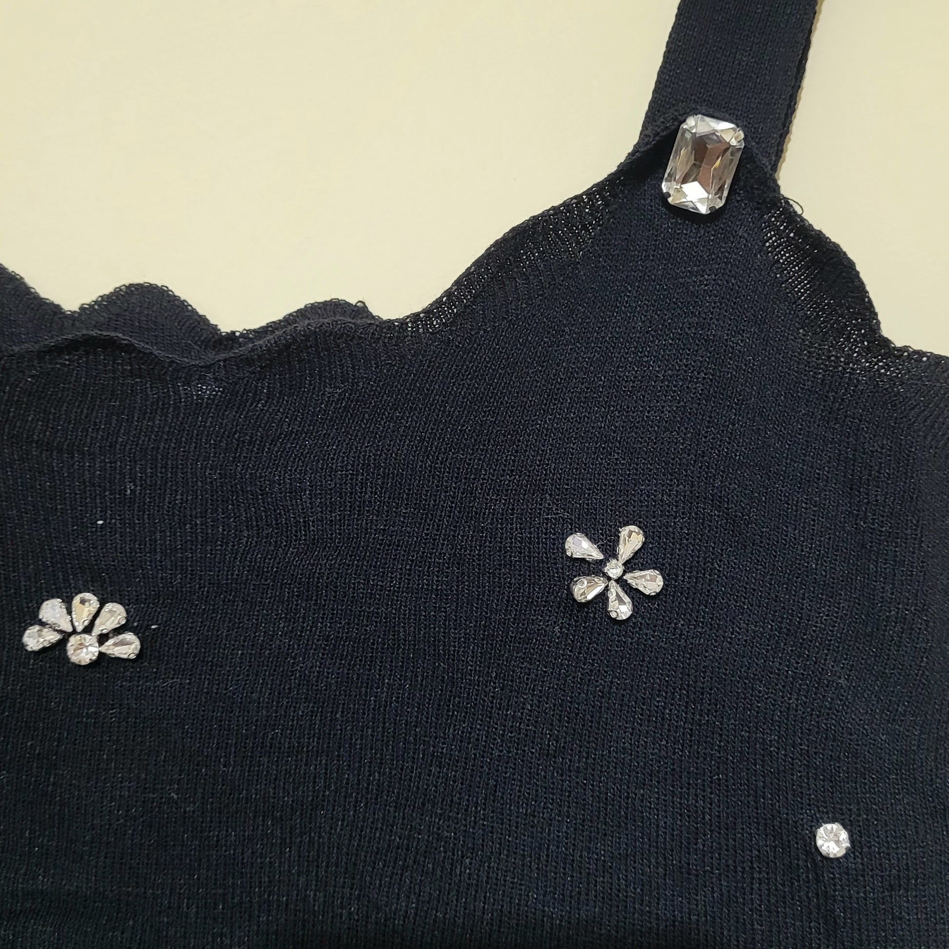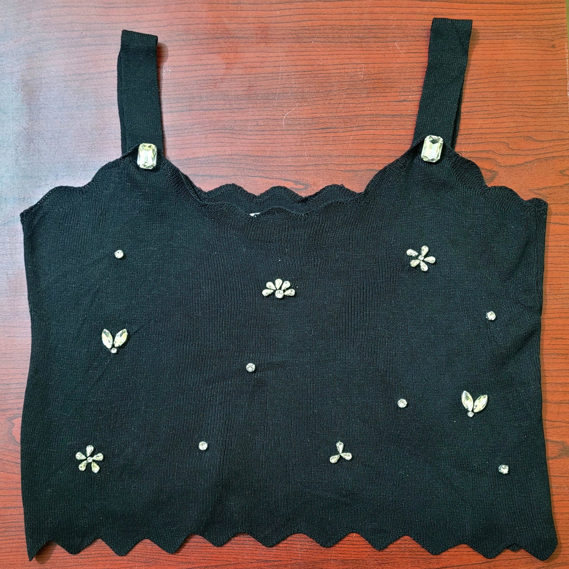 Emberaa Women's Crystal Edge Embellished Knit Crop Top