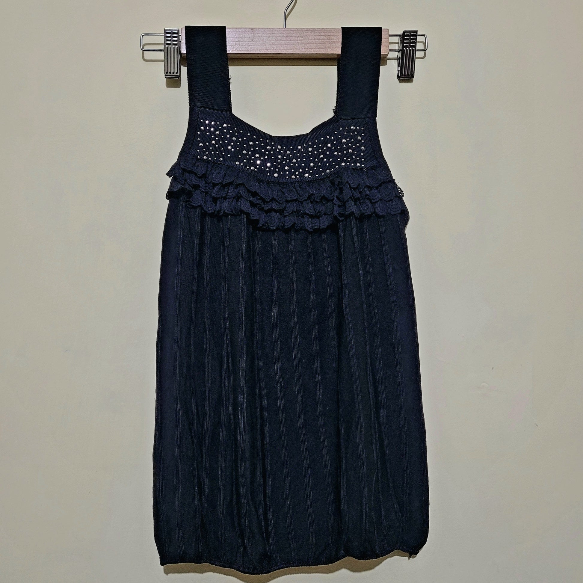 Add a touch of soft sparkle to your everyday style with the Emberaa Moon Spark Ruffle Crop Top. Designed with a delicate stud-embellished yoke and layered ruffle detailing, this top blends playful charm with effortless comfort. The relaxed silhouette and wide straps make it easy to style for casual days or evening outings. Pair it with high-waist jeans, skirts, or trousers for a chic, feminine look.